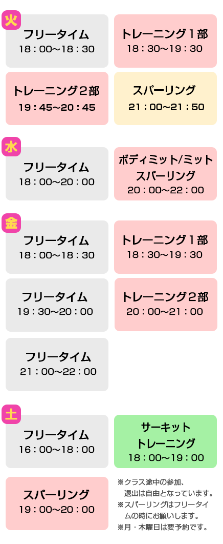 ※月曜日・木曜日のレッスンを希望される方は2~3日前に連絡をお願い致します。